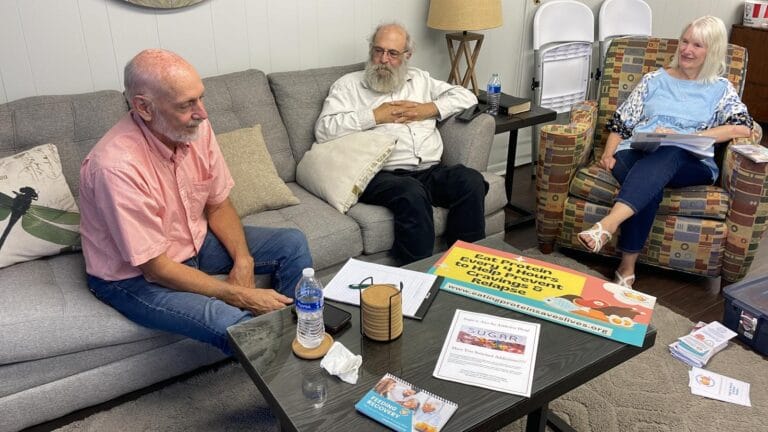Last night, I had the joy and privilege of meeting with two delightful people in epicenter of Kentucky’s flood disaster, Hindman, KY. Roy and Debbie Hodson run a non-profit called Heartkeep. Among other activities, they offer mentoring and support to Knott Co Drug Court clients, and a faith-based 12-step meeting. Debbie called me out of the blue yesterday afternoon, having found me on the internet after reading The Mood Cure several years ago. She grew up interested in nutrition, but became fully committed after a strict nutritional protocol restored her to health. She has been wanting to introduce the power of nutritious eating to her clients, but didn’t quite have the language or confidence to do so. But after the flood devastated her community (and we saw some of that devastation!) she was determined to get the word out. It was breaking her heart to see depression, anxiety and despair consuming many people who had lost everything, while they were still mostly feeding their brains with junk food. So she called me.
